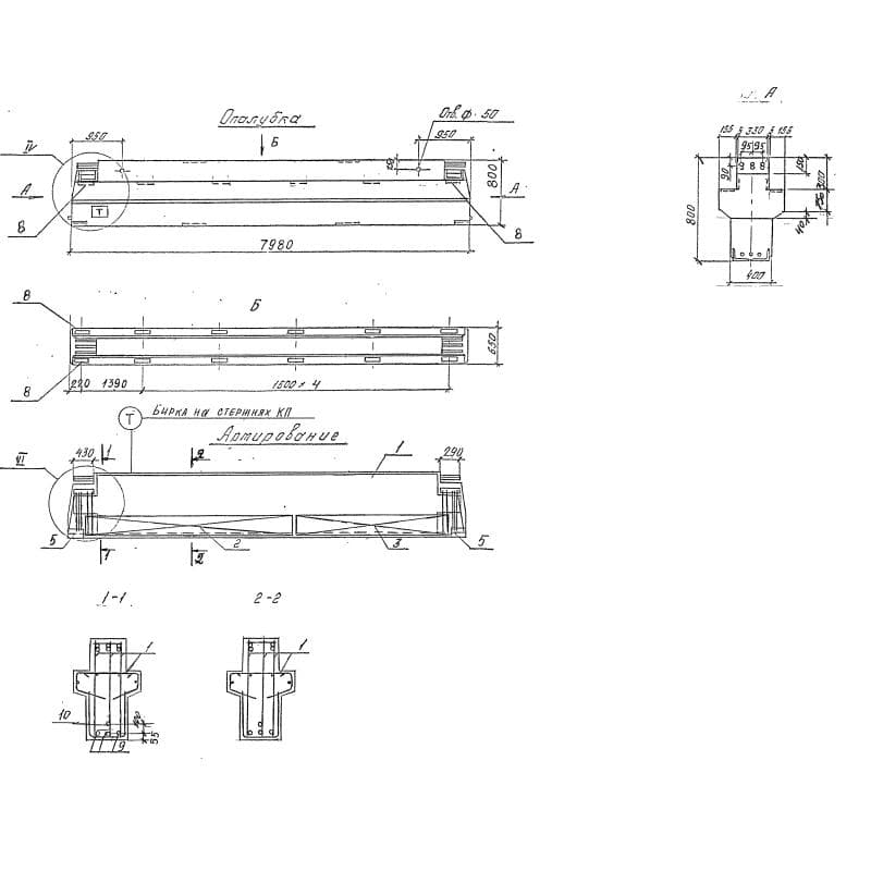 Ригели для опирания ребристых плит перекрытия и плит типа ТТ Серия 1.020.1-4