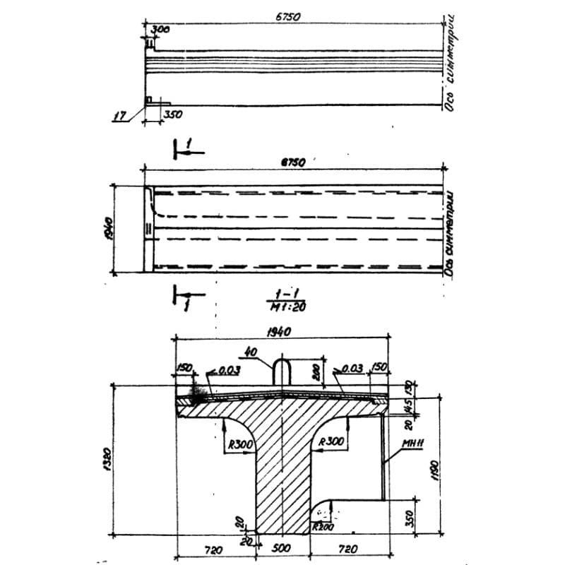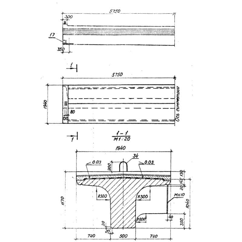 Балки внутренние пролетного строения с пониженной строительной высотой (плитные) Серия 3.501.1-146