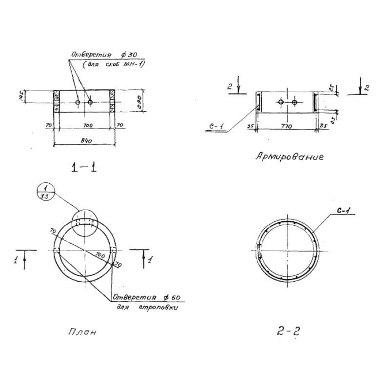 1. КС - стеновое цилиндрическое кольцо (в дм);